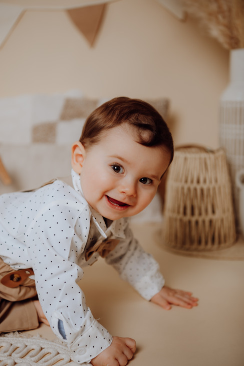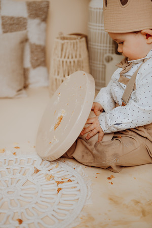 Hij ging meteen op in zijn modellenrol: al lachend poseren, nieuwsgierig proeven en aftoetsen en dan volledig losgaan op de taart. Ik stond echt verbaasd te kijken hoe goed deze kleine man het deed. Ook zijn mama bevestigde al snel dat we wel alle beelden zouden hebben en we het ook niet vettiger dan nodig gingen maken.