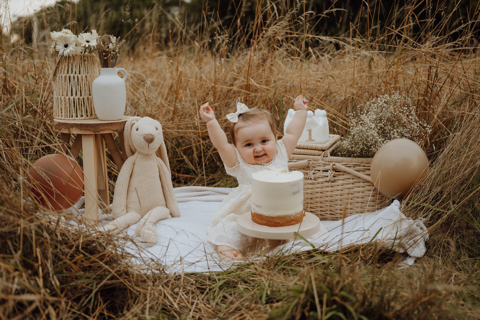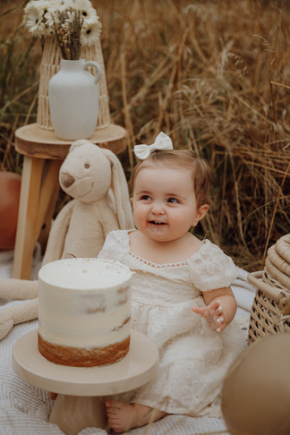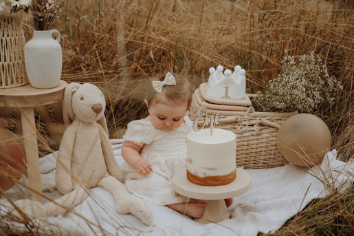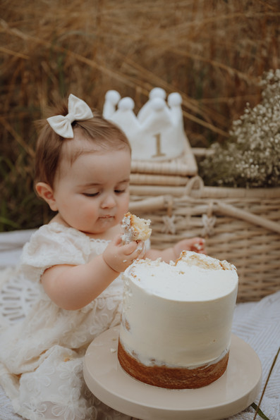 We trokken naar een veldje, zetten alles leuk klaar en lieten haar gewoon doen. Een echte cakesmash queen van begin tot eind. Eerst nieuwsgierig, dan een beetje proeven en al snel helemaal losgaan. Mega schattig ook met haar jurkje en strikje in de haren.