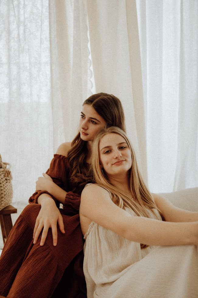 In plaats van bij de pakken te blijven zitten, besloot ik er het beste van te maken. Ik stuurde een bericht naar mijn zusjes, Nika en Nessa, en gelukkig konden ze last minute nog vrijmaken. Het werden alleen geen schattige “girlie girlie”-plaatjes, maar we pakten het iets creatiever en daarmee ook artistieker aan. Even helemaal los van verwachtingen, gewoon spelen met licht, compositie en sfeer.