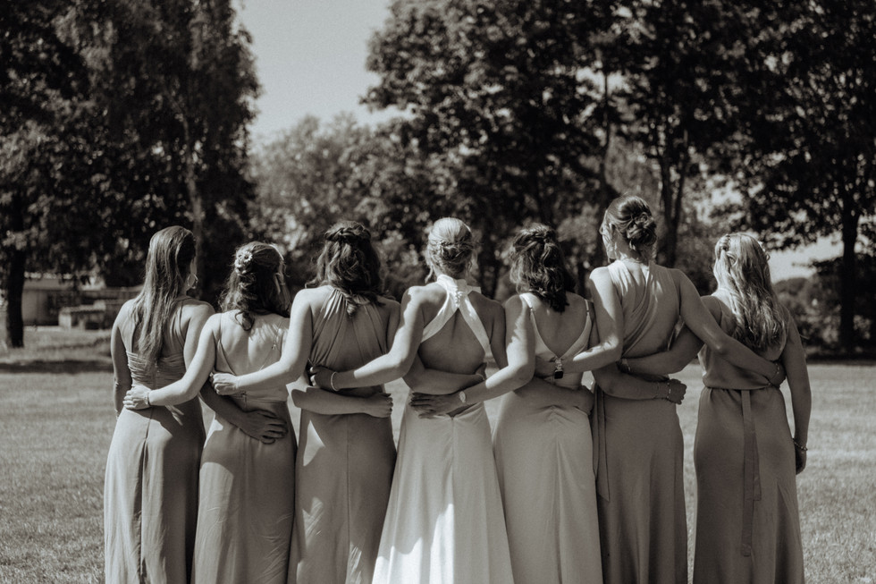De dag begon bij Silke, waar ze zich klaarmaakte samen met haar zussen en mama. Eerst de first look met haar bruidsmeisjes, daarna het moment met Brecht. Beide op een andere manier, maar allebei met kippenvel.